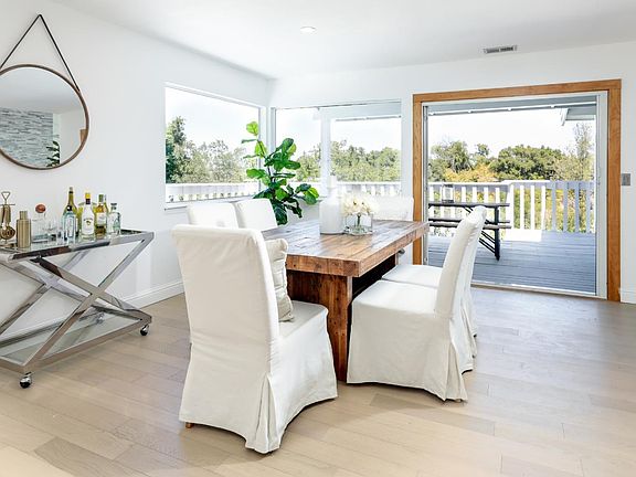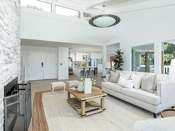 Tucked away in complete privacy at the end of a private lane off the main road, this home is extensively remodeled on more than 1.6 acres with a flourishing vineyard. Freshly painted inside and out, the two-story floor plan has hardwood floors throughout with the open living areas and primary suite on the main level plus three additional bedrooms and a large recreation room on the lower level. Floor-to-ceiling windows and French doors along with tall vaulted and paneled ceilings expand the dimensions and enhance the open-concept design. The kitchen is a chefs dream with white and stainless steel cabinetry, high-end appliances, and breakfast/wine bar seating. A large deck, perfect for outdoor living, spans the rear of the home and looks out to the East Bay hills and across the vineyard. Adding to the appeal is solar-powered electricity, plus a close-in location just minutes to the Village and Highway 280, as well as access to excellent Los Altos schools. Spacious Separate studio unit