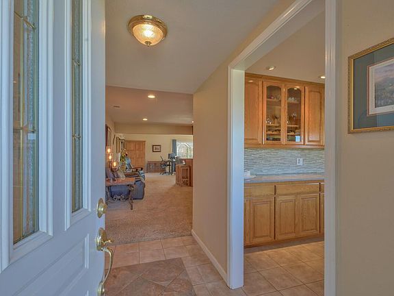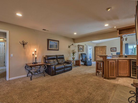 Truly an entertainer's delight! Imagine a big open home with living spaces surrounding a giant "entertainment center" central dining bar with seating for 11! Separate family room, formal dining room, eat in kitchen, coffee bar, living room and large open kitchen with all the amenities: solid surface, granite, tile flooring and loads of storage. Bonus, the fireplace iis two sided, to the formal dining area and kitchen and the family room on the other. Living room opens on either side to patio dining areas (1 covered). Seated on a large corner lot that has multiple parking areas, RV parking, dog run, garden shed and privacy fencing. Energy saving upgrades throughout and custom upgrades make this an ideal home for a family who likes fun!