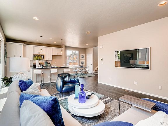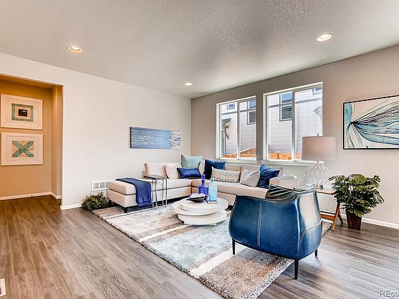 Final Opportunity in Berkeley Homes Community close to everything. 3 bedroom home plus flex space Open floor plan with site lines from entry through kitchen with dine-in island, separate dining and spacious great room. Espresso cabinets, quartz tops & designer splash with ss appliances in kitchen, weathered look laminate floors on the main level, upstairs has a private master suite with espresso cabinets, oversized shower, 12 X 24 tile, upgraded carpet & pad, 2 guest bedrooms, and open flex area, convenient upstairs laundry. A/C, 695 S. F. in full basement, 2 car garage and fenced patio area. Being built - available end of November. Hop on nearby I-25 and be downtown in 15 minutes or at DIA in only 25. Walk just four blocks to a future commuter rail station that can whisk you directly to Union Station. Nearby shops, restaurants, schools and 107 acre East Lake Park and Nature Preserve. PHOTOS SHOWN OF HOME WITH SAME FLOOR PLAN. FEATURES AND FINISHES WILL VARY