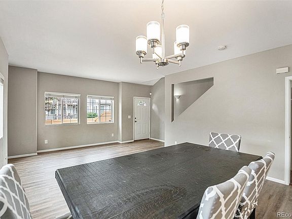 Welcome home to this light and bright end unit townhome! Rarely ever do townhomes have attached garages AND a yard - this unit has BOTH! Walk in and fall in love with this updated home. Beautiful newer laminate flooring, updated kitchen, and a spacious dining room for large gatherings. Picture windows allow the Colorado sunshine to stream through giving this space plenty of natural light. Upstairs, you'll find your primary suite with vaulted ceilings, large walk in closet, and en-suite bathroom creating the ultimate in privacy and relaxation. Two additional guest rooms are both oversized with ample storage space. Upstairs laundry is the ultimate in convenience. Your private yard is ideal for BBQ's, gardening, and drinking a cup of coffee in the morning. Located close to downtown Denver, DIA, and all the metro area has to offer, this one is sure to delight! Brand new carpet installed June 2024.