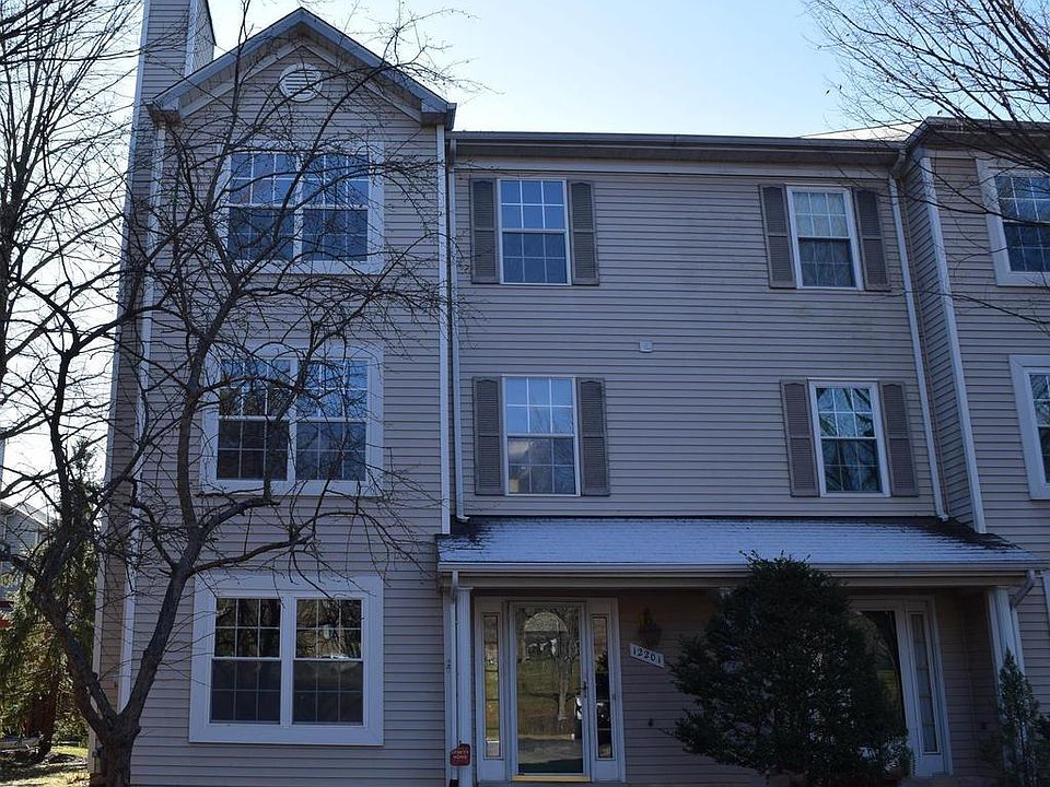 End Town home 3 spacious levels with expansive Living Room and huge country kitchen style kitchen. Table space area opens to elevated deck with a view. Hardwood floors, Granite counter tops, wood cabinets, ceramic tiled floors. Master bedroom with vaulted ceiling and whirlpool style tub in bathroom. Full daylite lower level with 4th Bedroom ( full bath ensuite) . Recreation room with fireplace and walkout to a private brick patio. The house needs TLC to bring back to Fabulous...