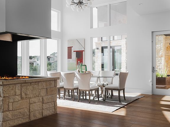 Warm, view-filled contemporary home in always-desirable Spanish Oaks. Set below the street, the site offers privacy in front while the back opens out to a spectacular vista of rolling hills, wooded ravines &; lush greenbelt. Luxurious outdoor living spaces will draw you out to splash in the negative-edge pool, grill up a meal in the summer kitchen while admiring the view or enjoy a nightcap around the alfresco fireplace. The one-acre lot includes a large lawn area for play plus lush native landscape for exploring. Inside, dramatic steel windows allow light &; views to flood into the double-height living &; dining rooms, which are separated by a striking, open-flame gas fireplace. The sleek gourmet kitchen offers European cabinetry, an oversized island &; plenty of storage. Host sophisticated events, serving guests a beverage from the glass-enclosed wine cellar before they wander outside to marvel at the koi pond &; enjoy the breeze. A second living area is set up as a media room &; offers multiple options for both entertaining &; quiet time. The main-floor primary suite enjoys its own gas fireplace, double-height windows, &; direct patio access; a sumptuous bath opens to two oversized walk-in closets, both w/ custom storage &; windows. At the top of the steel-railed stairs, a wide catwalk overlooks the living areas &; gives a view out over the hilltop; a cozy treetop study nook provides space for reading or homework. The second floor hosts two en-suite bedrooms plus another office that opens to a spectacular, private patio; w/ its own bath it could also be repurposed as a guest bedroom. Additional luxuries include a two-car garage w/ RV spot plus single garage &; street-level parking for guests. All the amenities of Spanish Oaks are yours to enjoy, from the miles of walking &; biking trails to the sparkling pool &; pavilion. Add a Golf Club membership for world-class golf, tennis &; more.