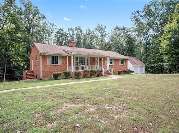 Custom Built single owner 4-sided Brick home w/ full walk out Basement on 1.55 acres near Hull Street corridor. Detached oversized 2 car garage makes for any manâs dream or perfect for a home business w/ walk up attic that could be finished. Attached Pole Barn fits a large RV/Boat. Oversized garage doors & 10â ceilings perfect for boats & trucks. Inside find a Living and Dining Room w/ HW floors & crown molding. Open Kitchen w/ tile backsplash, wood cabinets & solid counters. Family Room overlooks the private backyard w/ 2 skylights & Brick fireplace makes for cozy winter evenings. Three Bedrooms on the 1st level: Master Bedroom w/ MBath and 2 more Bedrooms w/ a Full Hall Bath (laundry chute). Downstairs itâs time to party w/ a large Bonus Room w/ brick wood burning FP, walk out door to large patio, wet bar, & locked liquor closet. 4th Bedroom w/ Full Bath in basement. Unfinished basement includes a laundry room, large storage area & oversized 1 car garage. Roof (â04), Heat pump (â08), Water heater (â05), newer Attic insulation. Gutter guards. Laminated Ceilings. Central Vac. Whole House Fan. Small stream in backyard. Meticulously maintained and solidly built, this house is a gem.