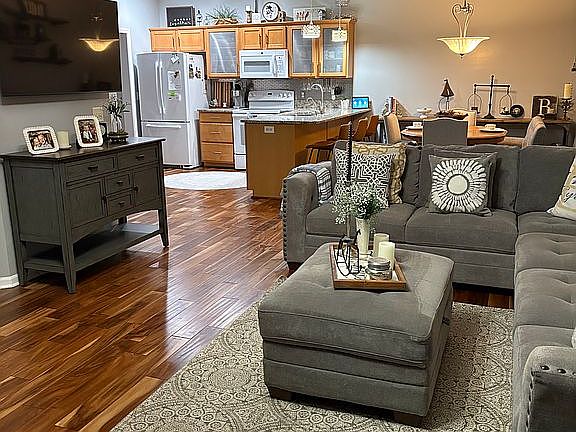 Turn key first floor condo in the Coves of Carroll Creek . Hardwood main areas carpet in bedrooms . Granite in kitchen and updated cabinets . Murphy beds for extra sleeping several new windows that were replaced . Must see