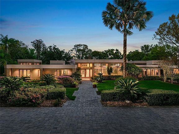 This incomparable property, located in gated Chain du Lac, is beautifully sited on over 3.2 acres with 230+ feet of lake frontage on Lake Butler of the famed Butler Chain of Lakes. This award winning custom residence has all the key elements expected in a Mid-Century Modern home. The lead and glass double front doors create a sense of arrival. Reminiscent of Frank Lloyd Wright designs the simplicity of form and clean geometric lines create wonderful open clean spaces, featuring clearstory windows and walls of glass taking advantage of the dramatic water views and natural landscaping. The open plan combines areas for dining, relaxing and entertaining. The kitchen opens naturally to the massive covered porch with bar and summer kitchen combine for the perfect indoor/outdoor lifestyle. The oversized pool and detached cabana create a lovely retreat for guests. The existing spacious boathouse and dock with multiple lifts and guest boat parking complete the exciting waterfront lifestyle.