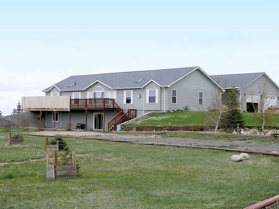 Huge home with 5 bedrooms, 5 baths on 9.3 acres. Beautiful landscaping, over 200 trees on a drip system. Walkway from house to garage. Walk-out patio 12x53, two furnaces, central air up, big shop area in 30x30 garage, concrete basketball court. Deck is 30x31, covered patio is 12x22, an amazing home!!