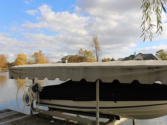 Steve Hoss custom built home on quiet cove on Geist, w/deeded boat dock on .70 acres. Open floor plan w/stunning views. Great room w/cathedral ceilings & large palladium windows. Gourmet kitchen w/solid surface counters, st. steel appliances. Main floor master w/sitting area. Master bath with whirlpool tub & walk-in shower. Built-ins, tray ceilings, & outstanding architectural detail. Finished walk-out lower level w/home theater, family room, full bathroom. 3-Season Sun Room. Must See!