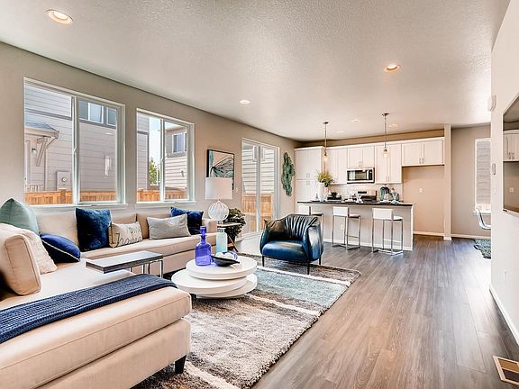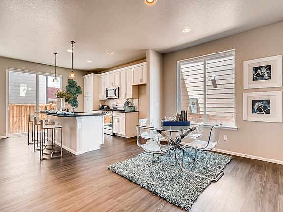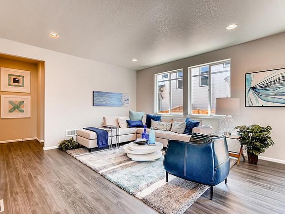 New Berkeley Community close to everything. 3 bedroom home plus flex space Open floor plan with site lines from entry through kitchen with dine-in island, separate dining and spacious great room. Espresso cabinets, quartz tops & designer splash with ss appliances in kitchen, weathered look laminate floors on the main level, upstairs has a private master suite with espresso cabinets, oversized shower, 12 X 24 tile, upgraded carpet & pad, 2 guest bedrooms, and open flex area, convenient upstairs laundry. A/C, 695 S. F. in full basement, 2 car garage and fenced patio area. Being built - available end of November. Hop on nearby I-25 and be downtown in 15 minutes or at DIA in only 25. Walk just four blocks to a future commuter rail station that can whisk you directly to Union Station. Nearby shops, restaurants, schools and 107 acre East Lake Park and Nature Preserve. PHOTOS SHOWN OF HOME WITH SAME FLOOR PLAN. FEATURES AND FINISHES WILL VARY