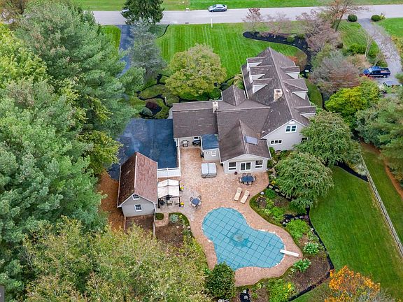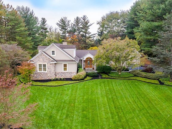 Upgraded and energy efficient home is perfectly set on a manicured 1.13 acre lot! An expansive front yard, bluestone walkway, and portico entry with a lunette window welcome you inside to the bright and open foyer with cathedral ceiling. Hardwood floors continue through the open living room, dining room, and kitchen featuring sleek granite counters, center island, custom backsplash, breakfast area, ample cabinetry, and a trio of windows and stylish pendant lighting above the sink. Relax in the family room with floor to ceiling stone fireplace and pellet stove insert. Sunroom with cathedral ceiling, wet bar, built-in entertainment center, panoramic poolside views, and slider access to the backyard oasis featuring an in ground pool, hot tub, large patio with sunsetter awning, and fenced back yard! Main level offers 2 bedrooms including the owner's suite boasting a walk-in closet and lavish remodeled bath showcasing a large granite vanity, soaking tub, oversized frameless walk-in shower with bench seat and custom ceramics! The upper level hosts 2 additional bedrooms, bedroom 3 with walk-in closet and additional storage. Lower level rec room, game room, 5th bedroom, and full bath, perfect for hosting guests! Portable 5000 Kw Homelite generator with a connecting cord to the sub panel which powers the refrigerator, microwave, water pump, and assorted lights in the event of a power outrage. The 2 solar panels are owned and feed the hot water tank. This home is ready to enjoy and impress!