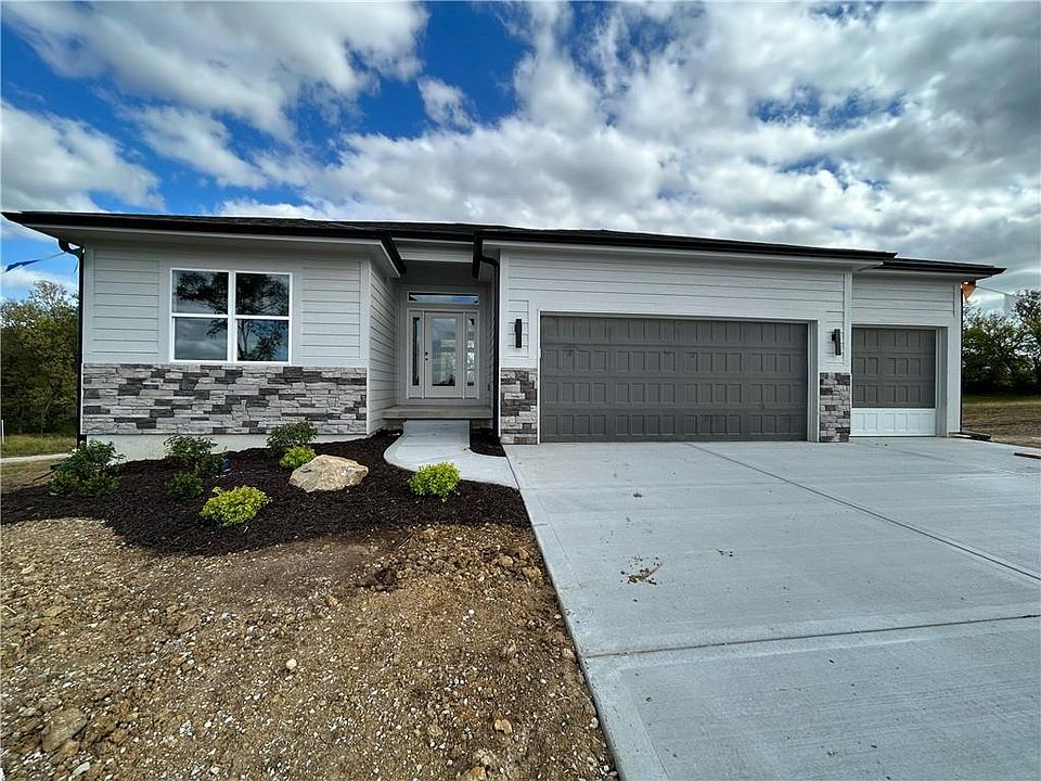 Experience the TELLURIDE by Gary Kerns Homebuilders! Step into nature with this generously designed open floor plan, brimming with abundant natural light! Stay cozy with an energy-efficient 96% gas furnace equipped with a humidifier. Enjoy the benefits of Low E windows throughout the entire home, complemented by sleek Stainless Appliances and a gas range in the kitchen! Revel in the luxury of custom cabinets and granite kitchen counters, featuring a large island and a convenient walk-in pantry. The allure extends to the finished lower-level, making this home truly exceptional. Nestled within the esteemed Smithville AAA School District, Woodland Creek boasts some of the most picturesque lots in the Northland. Proximity to Smithville Lake, Paradise Pointe Golf Course, and KCI Airport adds to the charm of this beautiful home! Please note that the photos are simulated, showcasing the finished product of a completed home. Anticipated completion date: October 2023.