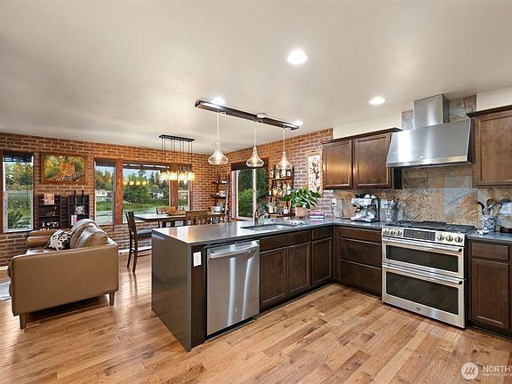Modern custom home in gated Rainbow Springs, where sweeping lake views and refined finishes define every level. The main floor features Brazilian oak floors & a chef’s kitchen with solid-surface counters, accent tile, breakfast bar, & stainless appliances, seamlessly flowing into an inviting living area with fireplace & picture windows. The upper level is a spacious primary retreat with sitting area, spa bath, walk-in closet, & fireplace. The daylight level with separate entry access, kitchenette, bath, laundry, & flexible studio/second bedroom offers guest space or potential income. Outdoor living shines with tiered patios, composite deck, artificial turf, firepit, hot-tub-ready pad, storage shed, new pontoons, & an efficient heat pump.