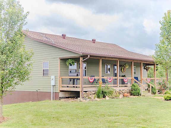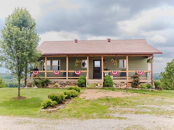 Check out this charming 2-bedroom country home sitting on 32 acres, just south of Ava. This property offers a perfect blend of rustic charm and modern comfort and is nestled right in the heart of the Ozark mountains! The house features a beautiful covered front and back porch that is perfect for enjoying those beautiful summer evenings or cool spring mornings with an amazing view. The main level features a gorgeous open floor plan with custom kitchen, 2 spacious bedrooms, and one and a half bathrooms. The downstairs area offers extra unfinished space that could easily be more bedrooms or storage. The downstairs also includes a bathroom and 2 car garage. Just a short walk from the home, there is a large 40x60 shop with a full bathroom and central heat and air that could easily be turned into an additional living space. Come see this one today.