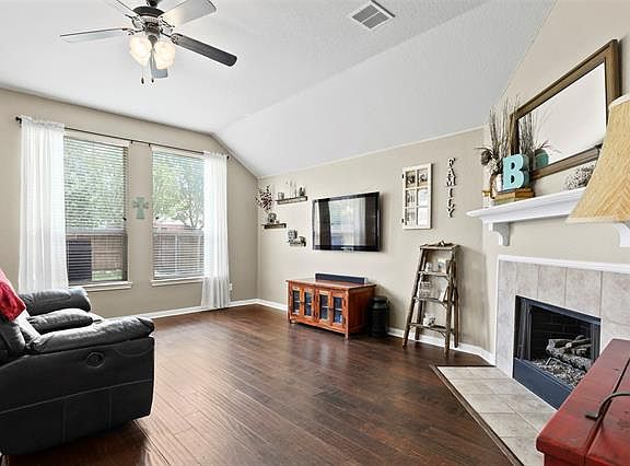 Lovely 4 bedroom, 2 bath home in much sought after Villages of Woodland Springs! Beautiful hardwood floors throughout home. Open concept floor plan. Formal dining room and office with French doors at front of home. Gourmet kitchen features NEW granite countertops and gas range, stainless steel appliances, and walk-in pantry. Corner fireplace in living room. Master suite offers soaking tub, separate shower, dual sinks, and walk-in closet. Split bedrooms. 2 of the bedrooms have window seats. Built-in bench with hooks for extra storage. Exterior features include a large fenced yard with patio. Close to schools, shopping, dining, and entertainment. HOA offers pools, parks, jogging paths, and so much more!