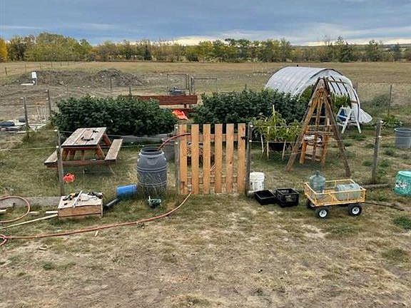 If "OFF GRID" is the lifestyle you are searching for, Look no further, this acreage has all the boxes checked off. You get the state of the art self tracking solar system that follows the sun across it's East to West pattern, then at the end of the day it goes back to the East waiting for the next day and it stands straight up and down to keep any snow from accumulating over night. There is a 8 x 10 propane heated shed that houses the 8-12 volt batteries and solar system equipment, it also houses the Kubota 8.5 KVA diesel backup generator system, water cooled, low 1800 RPM, full auto gen start with a gateway to have a full viewing and operations on your PC or Laptop, it helps keep your batteries charged when needed, the 60 amp 120/240 volt system has the power to run a welder, electric fence, and power for the home. The water system operates with 2- 270 gallon water cisterns and is kept warm by a propane heater under the home. You also get a 20 x 40 x 16 high tarp work shop or garage. Outside you get 9.88 acres that is fenced and cross fenced with 3 pasture areas, you also get a 10 foot deep, 16 x 30 dugout for watering the garden and livestock. The yard was just newly gravelled. The home comes with a permitted 2 stage septic system with a pump out. Call today for your private viewing before this one slips away on you.
