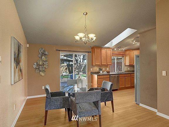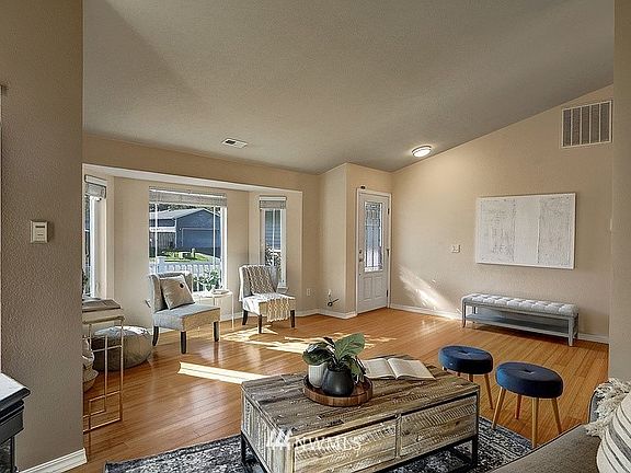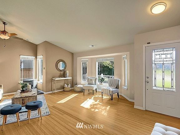 Delight in this traditional rambler in highly sought after location. Master bedroom features a full bath & walk in closet. French doors from the master bedroom open to the private feeling backyard with mountain views. The charming backyard for play features 2 decks, with the deck off the master bedroom wired to accommodate a hot tub. Vaulted ceilings open up the living room and dining room. Modern kitchen details of granite counters and stainless appliances compliment the abundance of cabinet space. Heat pump with central AC and a pellet stove increase your energy options. Additional features include RV Parking, side yard covered storage, hardwired for speakers inside with outside speakers, and a security system. Snohomish School District.