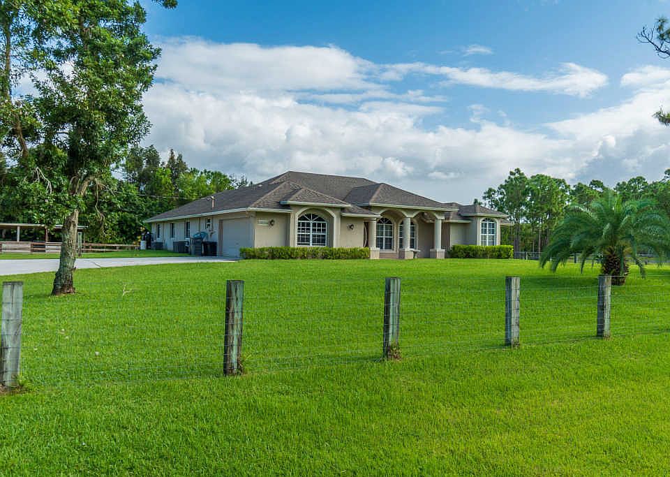 Well kept 2003 construction. Spacious and open split floor plan. 1.15 acre lot situated towards the end of the street in a nice neighborhood.Relax on your screened in patio and enjoy the pool. This house features a cabana bath as well, so you are all setup for inviting friends and family to enjoy the South Florida outdoor living with you. This property features a barn with 3 horse stalls and a fenced-in pasture area. Great home for animal lovers. PRE-INSPECTED - house in great condition, report availableNEW: AC, Pool Pump,Well pump, Sprinkler System