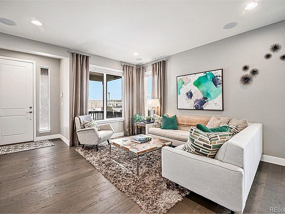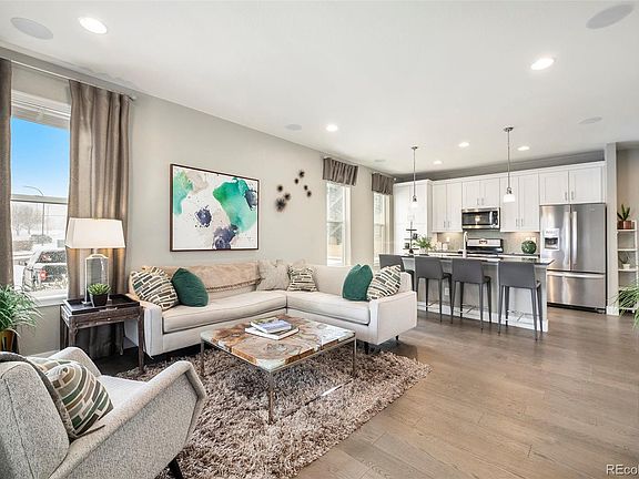 Previous Model Home – Move-In Ready! This stunning, beautifully appointed paired home offers style and comfort in a prime location. The main level boasts an open-concept design filled with natural light, featuring a spacious living room seamlessly connected to the gourmet kitchen, which showcases quartz countertops, stainless steel appliances, a gas range, and a penny round tile backsplash. The dining area provides direct outdoor access to your fully fenced backyard. Upstairs, the luxurious primary suite includes dual vanities and an oversized shower, accompanied by an additional bedroom and a non-conforming (no closet) third bedroom, currently used as a study with stylish barn doors. A conveniently located laundry room with a washer and dryer included adds to the home's appeal. The 766 SF unfinished basement, with rough-in plumbing for a future bathroom, offers endless customization potential. Completing this exceptional home is a 2-car attached garage featuring built-in storage, providing ample space for organization. Ideally located just blocks from the light rail for easy downtown commuting and surrounded by numerous dining and shopping options, this home provides unbeatable convenience and flexibility. Don’t miss this incredible opportunity!