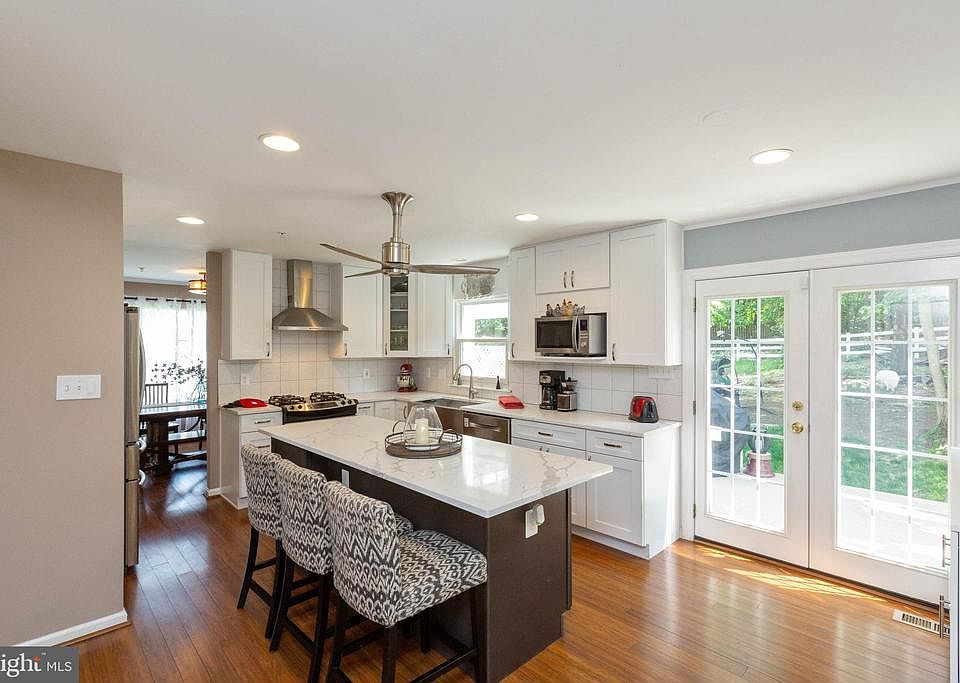 Open House Sunday 5/26 from 1-3. Owner has poured love and $$$ into this lovely home for six years, never expecting to be moving. The home warmly welcomes you and guests from the plantings at the mailbox up to the beds at the front of the house and around the sheltering front porch. To die for Chef's kitchen with stainless stove hood and farmhouse sink. Beautiful white marble counters and island top on white base cabinets full of drawers with 42 inch white upper cabinets. Sculptural ceiling fan over island keeps the Chefs cool. Owner installed recessed fixtures bounce light off the white cabinets and veined white marble. French door fridge with bottom freezer and microwave conveniently away from gas stove top. Two Chefs can share this kitchen while chatting with bar stool chefs at the island or in the adjacent family room. French doors open to let guests and family spill out on to expansive TREX deck with room for seating, grilling, and dining. The yard is landscaped with blooming perennials and bulbs for color through the summer. Trees provide shade for a hammock, swing chair, bench. When the seasons change, the family room is great for entertaining with a cozy gas fireplace and views through tall windows of the wooded yard. Dining room has plentiful light with tall windows and room to expand a long table to accommodate holiday dinners. Living room is comfortably sized for conversation and a large desk for command central. A convenient half bath and coat closet complete the main level. Upstairs the master bedroom really is as HUGE as it looks in the photos. Plenty of room for oversize furniture and a sitting area. (Still room for a treadmill!) The custom ensuite bath with walk in shower enclosed with frameless glass, double vanity, and furniture styled linen closet will make mornings a joy. Down the hall three other large bedrooms have ample closets. Bedroom four has windows on two sides and a walk-in closet. Bedroom three has a "step-in" closet and