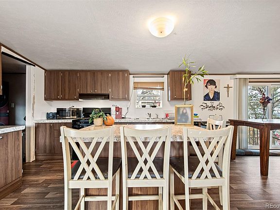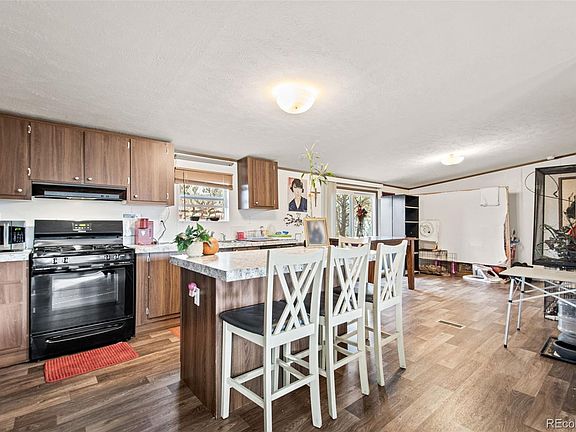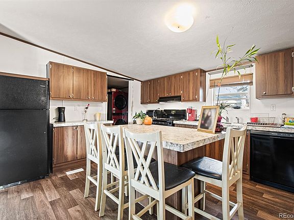 Welcome to this beautiful 2022 4 bed 2 bath home in Cimarron Village divinely located on a corner lot! Enter into your bright and spacious living area with new vinyl flooring. The kitchen is gorgeous with plenty of cabinets for extra storage, a pantry and tiled floors. The kitchen also includes granite countertops, custom tiled backsplash and all stainless appliances that are all included, plus there is room for a dining table. The primary bedroom is huge! Plenty of room for large furniture and a sitting nook next to either of the windows. Escape into your luxurious primary bathroom with a large soaking tub, decorative vanity and step-in shower. The second bath also has beautiful upgrades with custom tub surround and decorative vanity with tiled backsplash. Love your outdoor living space with large patio, beautiful landscaping and seasoned trees and shrubs, plus storage shed is a bonus! This home comes 2 off street parking spaces. Enjoy your modern onsite amenities including a clubhouse, pool, basketball court, billiards, a game room and picnic area. Bonus! RV Parking! Easy access to I-70 and minutes from DIA