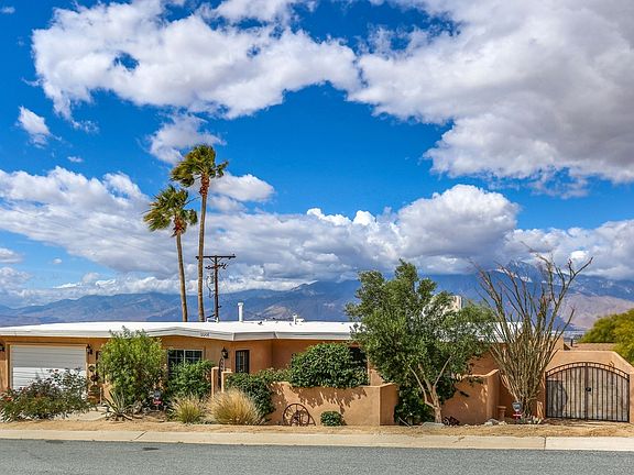 A spectacular home with spectacular views! This updated Mid-Century home up in the hills above Desert Hot Springs offers some of the best views of the Coachella Valley! Inside the home you will find a large and open living area with a tastefully divided dining area which maintains the feeling of an open and airy home. The kitchen has been updated and features stainless steel appliances, a breakfast area, and lots of windows to bring in natural light (and views!). The three bedrooms are spacious providing lots of room and the bathrooms are fresh and clean! In the front you find an enclosed patio for added privacy while in the back you have a nice gated wrap-around yard with plenty of living space!