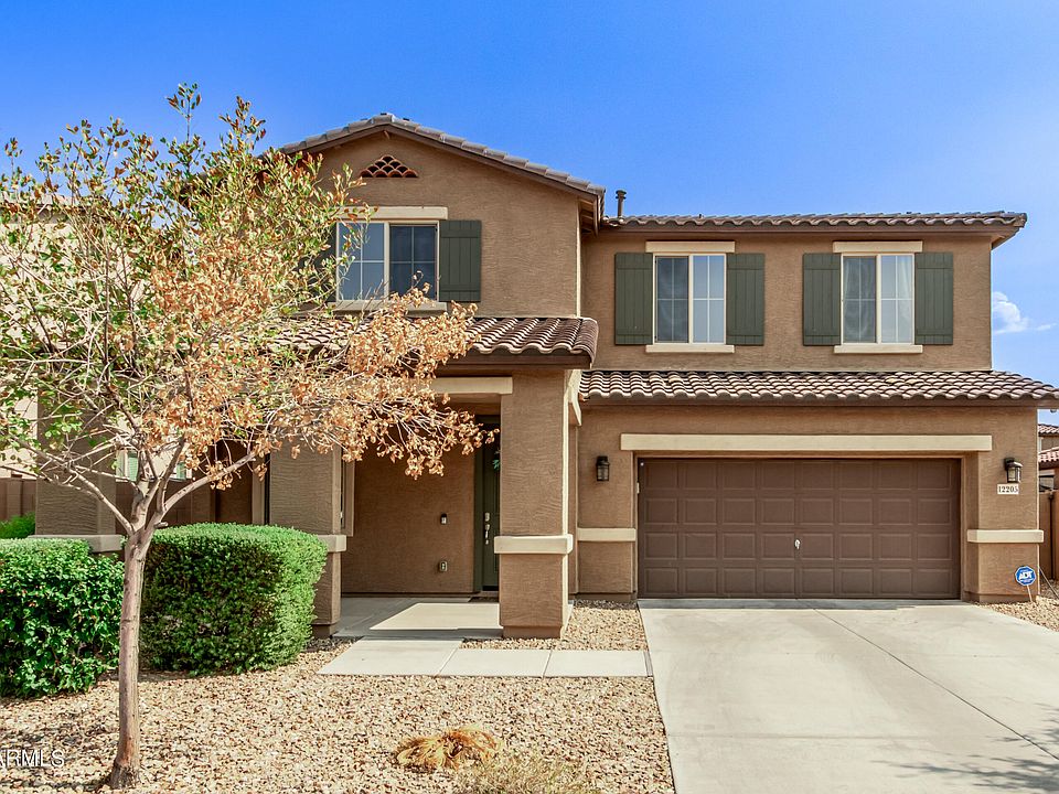 Explore this two-story gem in Avondale, designed with a sleek, modern interior. Step inside to wood-look flooring, recessed lighting, and a neutral palette. Double doors lead you to a cozy den and a hallway that opens into a welcoming great room, ideal for making memories. Lovely kitchen features abundant wood cabinets, stainless steel appliances, granite counters, and a center island with a breakfast bar. Dine in style in the formal dining area. Spacious primary bedroom offers a sitting area, an en suite with dual sinks, a soaking tub, and a walk-in closet. A versatile bonus room serves as a perfect media center. The garage includes attached cabinets for extra storage. Outdoors, a covered patio, lush grass, and a Ramada provide a serene retreat for relaxation. Your new dream home awaits!