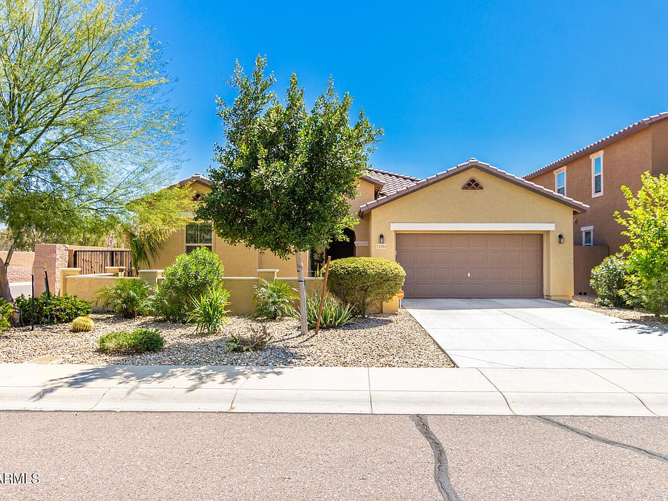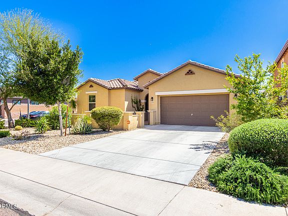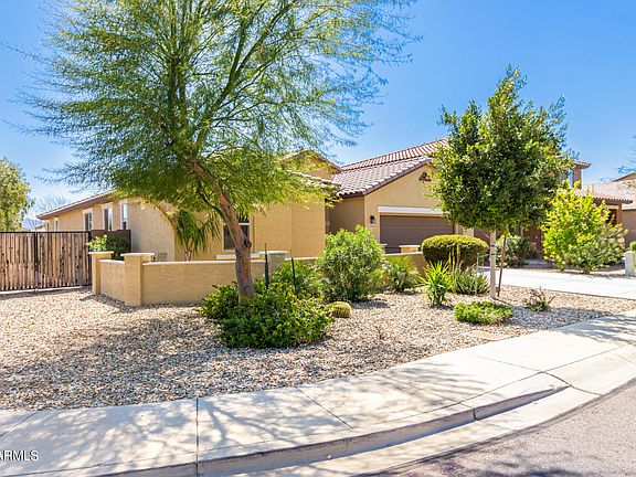 Must see! Take a look at this desirable corner lot residence in Del Rio Ranch! Fantastic curb appeal featuring a 3-car garage, RV gate, charming desert landscape w/ mature shade trees, & a welcoming patio. You'll be delighted by the pleasant open layout showcasing tile flooring, recessed lighting, & plenty of windows letting in abundant natural light. The remarkable chef's kitchen includes granite counters, a walk-in pantry, paneled cabinets w/ crown moulding, pendant lighting, mosaic tile backsplash, sparkling SS appliances, & an island w/ a breakfast bar. The main bedroom enjoys soft carpet & a private bathroom w/ dual sinks & a walk-in closet. Grab your favorite drink & relax in the backyard offering a covered patio, pavers, & a storage shed. Don't miss this gem!