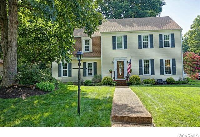 Beautiful four bedroom colonial on large corner lot at the edge of cul-de-sac. Many upgrades including an eat-in kitchen, renovated in 2012, with new cabinetry, recessed lighting, and pantry with shelves by California Closets. Formal Dining and Living rooms and cozy Family room with fireplace with Buck Stove insert. Hardwood floors throughout the majority of first floor. New vinyl siding and replacement windows with lifetime warranty. Water heater replaced in 2015, new shed in 2014, repaved driveway in 2013. Beautiful landscaping with new back flow on irrigation system in 2015. Convenient west end location with sought after Henrico County Schools.
