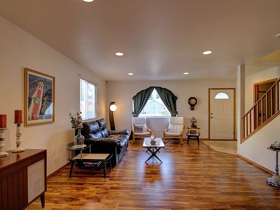 Welcome home to the desirable Bayhill Village community. Step inside a custom four bed home with hard wood flooring and a surround sound intercom system throughout. Featuring recently added stainless steel appliances in the island kitchen with french doors to dining room & also to a separate wing of the home with an extra kitchen and bonus room, which offers versatile living space or a rental opportunity, the versatility is endless. The master suite benefits from a custom shower, useful laundry chute and a skylight window as well.With an attached garage and plenty of driveway this home offers an amazing opportunity for comfortable living with I5 and Hwy 20 within easy access for commuting.