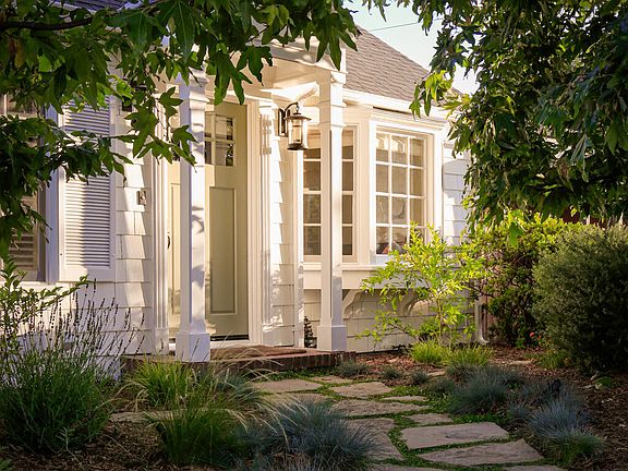 Welcome home to this Valley Village ''jewel box'' that makes it's debut for the first time since it was originally built in 1940! Extensively remodeled by one of LA's premier architect, Tim Barber. This charming 2 bedroom/ 2 bath thoughtfully balances original character with modern, high-end updates. Enter into the Living Room w/ vaulted, ship lapped ceiling, hardwood floors,double fireplace and beveled glass windows. The fabulously renovated Kitchen features a Thermador gas range, Shaws Original farmhouse double sink w/bib & Brooklyn Made gooseneck faucet, custom cabinetry & Carrera marble countertops. A new, full sized washer/dryer in Laundry Room nook behind custom pocket doors. Primary Suite boasts vaulted ceiling, custom built in shelving w/ lighting and cozy window seating for peaceful views of the rear yard. Enjoy the spa primary bathroom's coved walk-in shower, custom marble topped vanity & 2 large closets. The second Bedroom w/ large bay window & spacious closet faces the front gardens. Hall bathroom with restored original tub w/ new shower and Ann Sacks tile. Family Room w/original brick fireplace and beamed ceiling opens to a covered concrete patio to the grass yard perfect for entertaining. Privately tucked behind a fully fenced, professionally landscaped, flat grass yard w/ mature fruit trees including an original Meyer Lemon tree ,orange trees, raspberry vines and drought tolerant butterfly & hummingbird garden. Custom ''Modern Shed'' in the rear for guests, an office or creative space. In coveted Colfax Elementary School zone and close to all the best offerings in Valley Village. This property is not to be missed!