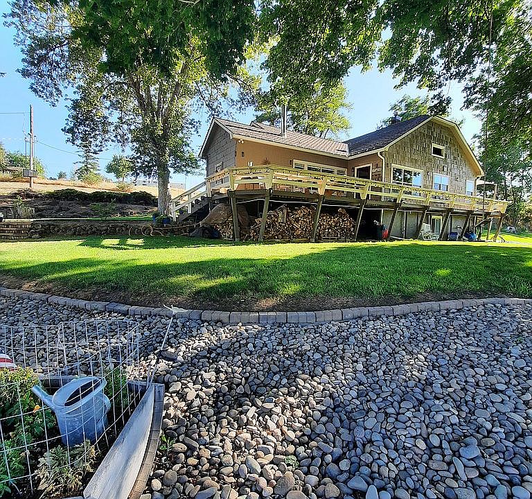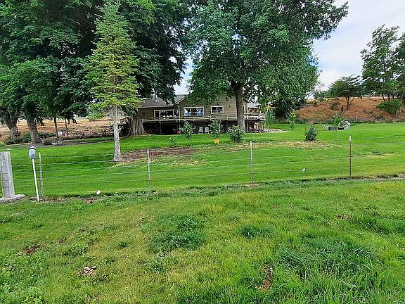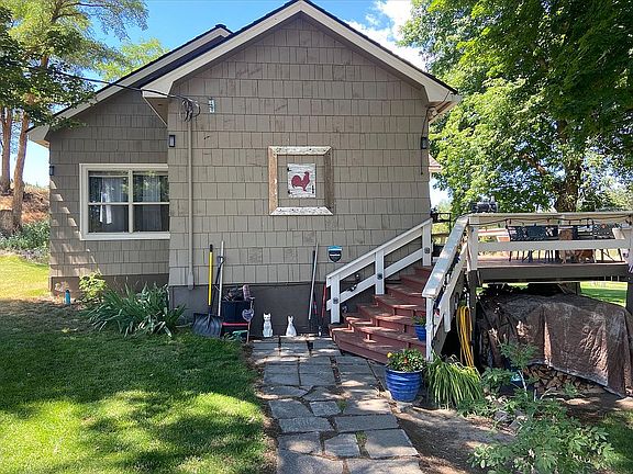 This vintage character home, is set on a large park-like yard, within 3.92 irrigated acres to be enjoyed by a family who loves space and animals. There are are 2 pastures and a large paddock area ready for horses or other farm animals. There is a chicken coop where the chicken love to roam free. The home is warm and inviting with a full, nearly 1500 square foot finished basement with a lot of storage, to play pool, kick back and relax, watch movies, play games, or head out to swim in the pool, sit around a firepit, or enjoy the large shade trees while listening to the sounds of nature. This home has a deck that wraps around the front and west side of the house overlooking the majority of the property. The main floor has high ceilings and wood floors throughout, a large kitchen, dining and living room with lots of windows. Updates include central air and heat, new plumbing, wood stove on main floor, pellet stove in the basement, ceiling fans, automatic sprinklers with a timer for the pasture Irrapods as well. The outdoor space has a private/separate irrigation well, and is fully fenced with a gate at the start of the drive that is set back at the end of a private road. A large hay shed/barn, and a separate shop/garage with an additional carport to use for storage and protection for all your extra equipment.