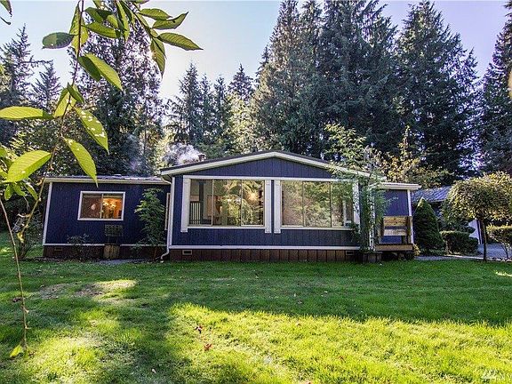 Escape to your private retreat. 60' Evergreens trees, lush Ferns & your own backyard pond, on a Bright Sunny 5 acres. 8 minutes from Monroe WA. This recently updated 2+bed 2bath manufactured home's setting is so private & peaceful! It's move in ready with fresh carpet and paint. Wood Stove in the sun porch heats house. Detached 2 Car Garage/Shop and additional Pole Building! Septic is designed for 4BD Live&Build? PLEASE SEE VIDEO *VA or Cash ONLY* MF Home was ADU then moved to back 5 acres.