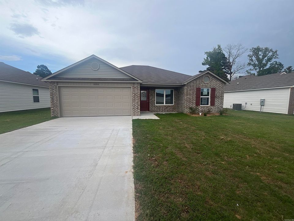 Franklin plan Upgrades in home: 14'x10' covered patio with architectural shingles, 60" fiberglass standup shower, plumbing faucet upgrade 2, 8" deep Kitchen sink, pull out Kitchen faucet, door bell, wall mounted TV prewire, 16" laminate bar top in Kitchen, Luxury Vinyl Plank flooring in wet areas and Living Room and adjacent hallways and all Bedrooms including closets, faux wood blinds, fiberglass exterior doors, Cheyenne style doors, front door level 3, baseboards level 2, LED disk light over Master Shower, full sod, microwave hood in Kitchen.