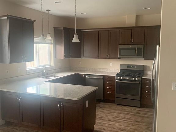 Newly built 3 bedroom 2 1/2 bathroom, big 2 car garage, laminate flooring downstairs, carpet upstairs, stainless steel appliances, granite counter tops, nice neighborhood, must see to appreciate NO SMOKING Pets on approval with additional pet deposit We pay water and garbage, tenants pay gas and electric 1 year lease