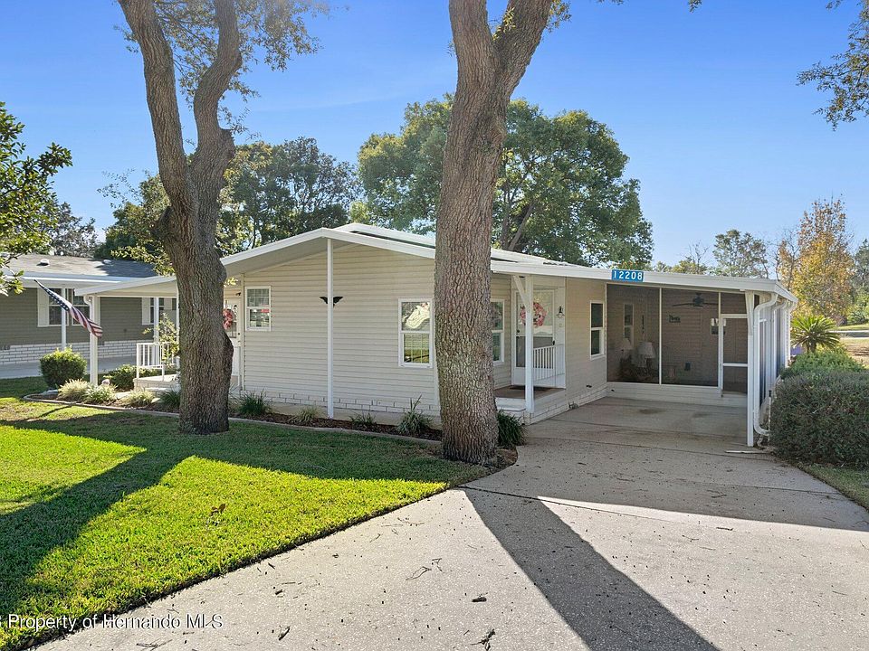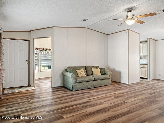 Curb appeal abounds with the low-maintenance exterior: a sturdy METAL ROOF, double pane INSULATED WINDOWS, and VINYL SIDING that shines bright. Step inside to discover NEW LVP FLOORING, flowing seamlessly through the spacious living area CATHEDRAL CEILINGS THROUGHOUT. The kitchen, with its abundance of cabinets and counter space, makes whipping up meals a breeze. A huge utility room offers plentiful storage. When it is time to sit and relax you have your choice of a fully enclosed Florida room, the front porch, of a spacious screened lanai in which to enjoy a morning coffee or afternoon cocktail!