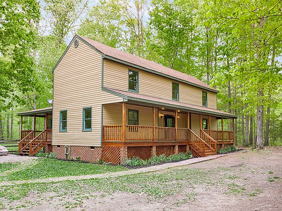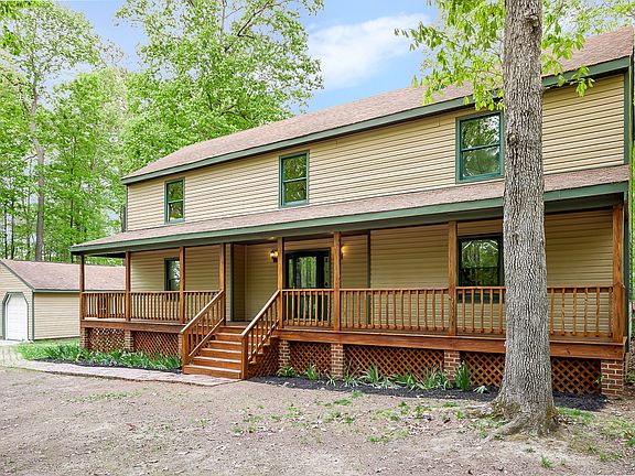 SPACIOUS HOME... with (NEW STAINED) FULL length country porch. Through the front door you will notice the AMAZING FOYER SPACE. Straight ahead is the open dinning area w/ extra space for a sitting area by the fireplace, open country kitchen includes NEWER updated appliances and lots of storage. To the left of the foyer is the large formal living room. NEW REFINISHED Wood floors adorn majority of 1st floor to continue that country feel. FIRST FLOOR MASTER with large walk in closet and full master bathroom. ALSO Second Floor Master w/Jack and Jill Bathroom or use as (LARGE RECREATIONAL room) waiting for your added 60" barn door. The second floor has 2 more spacious bedrooms as well, and the upstairs landing has a great sitting/study area over looking the stairs and front lookout window. NEW CARPET, NEW PAINT, NEW FLOORING throughout entire house... 2 car Detached garage w/work bench and organized storage is located at the end of a long private driveway enclosed by trees, nice brick walkway and entertainment patio leads to the side porch. Cleared level backyard is fenced. Horses are permitted in this area. Easy access to interstates, shopping, Fort Lee and schools!