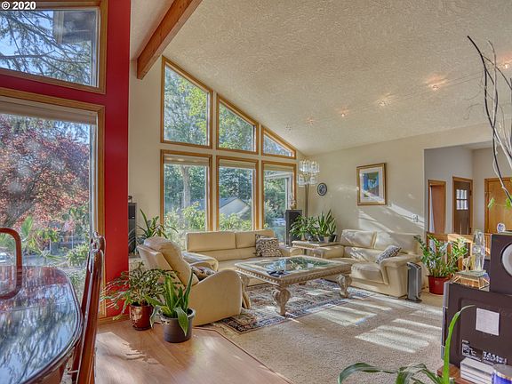 Charming home in nice neighborhood offers one level living with soaring vault and beam ceilings in the living room, dining, kitchen and den. Floor to ceiling windows bring in tons of natural light. Slider to deck and large fenced back yard with garden beds. Conveniently just minutes to Clackamas area shopping or I-205.