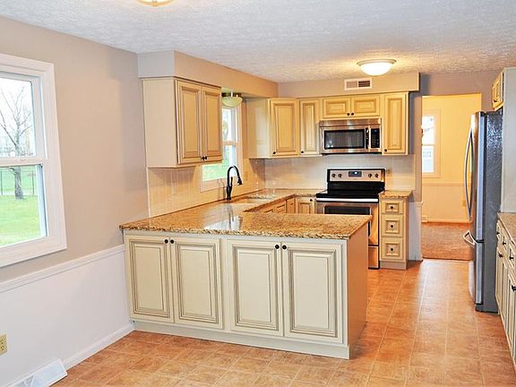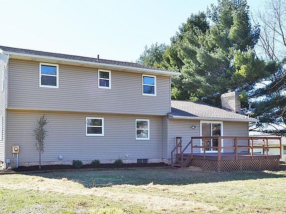Wonderful cul-de-sac 4 bedroom, 2.5 bath colonial in desirable Pueblo Estates in Lake Township. Welcoming brick front porch spans the front of the home. Foyer entry open to L-shaped living and dining room. Completely renovated kitchen with Windy Hill Heritage custom cabinetry, 19 in total, Giallo Napoli granite countertops, breakfast bar and brand new Whirpool SS appliances including French door refrigerator. Cozy family room with wood burner insert in fireplace opens to backyard and deck. Fireplace has been cleaned and serviced. Updated half bath with Corian countertop. Master suite with full bath with stand up shower and Corian counters. Three additional roomy bedrooms and full bath with Topazic Imperial granite counters complete the second floor. Warm, neutral color palette throughout. Additional March 2017 renovations include all flooring, plumbing, light/plumbing fixtures, New double pane vinyl windows, Comfortmaker 92% efficient Furnace/AC, Hot Water Tank. New septic April 2017. Beautifully landscaped yard. Attached 2-car garage with hot and cold water. Close to Uniontown Community Park and Quail Hollow. Lake Local Schools. Don't delay, Make this your home Today!