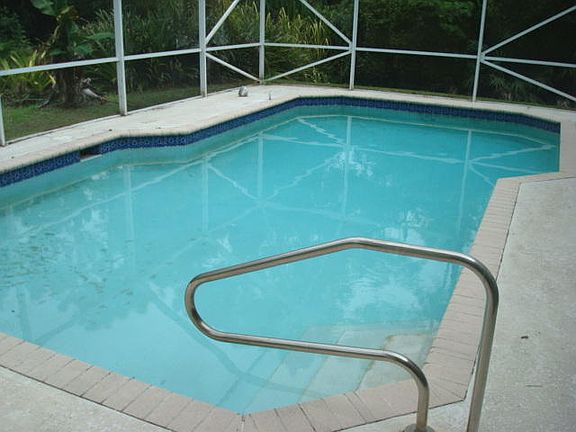 Beautiful 4 bedroom 3 bath screened in pool home with a 2 car garage. This home was just painted inside and out. The home features new carpeting, vaulted ceiling, 3 full bath one of which opens to the pool, propane gas appliances, white cabinets in the kitchen and white appliances and eat in kitchen. Close to shopping and major roads.