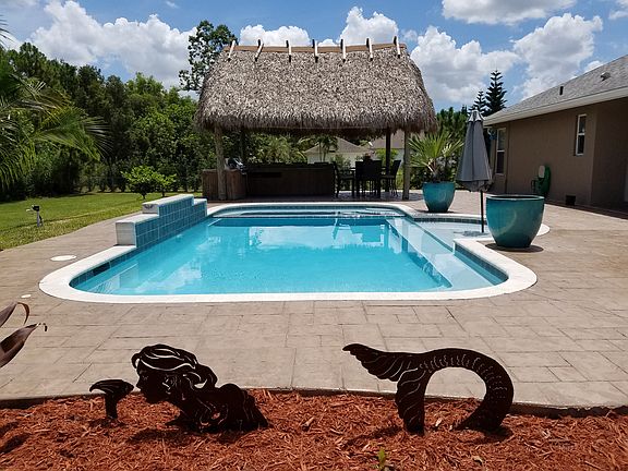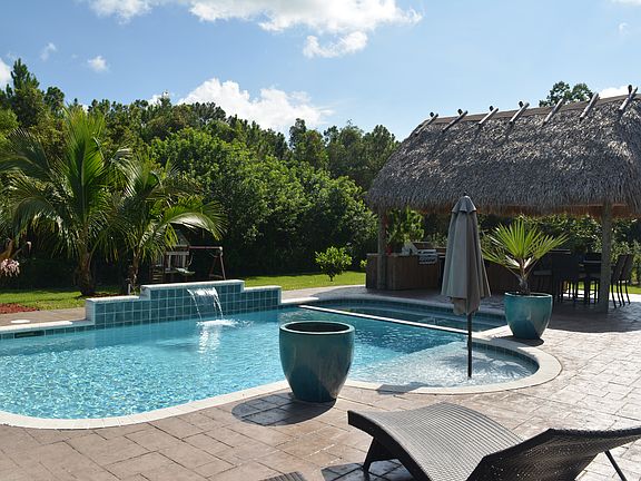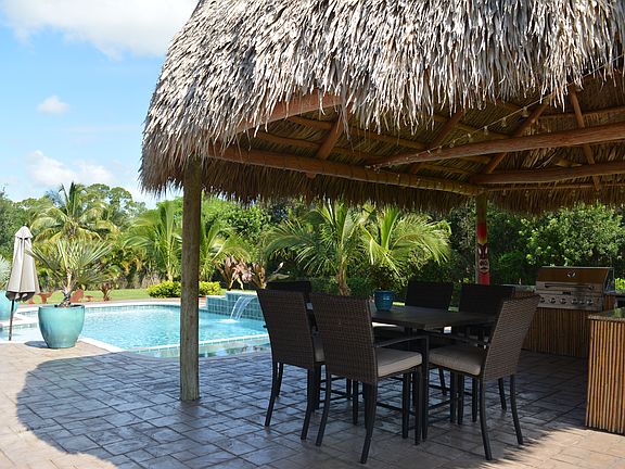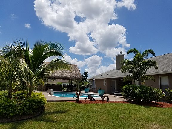 Welcome home, where country meets the city. Enjoy the luxury of this beautifully maintained private home in the Acreage located on a PAVED ROAD! This 4 bedroom, 3 bathrooms, 3 car garage 2,449 sq. ft. home includes a double doors entrance that invites you into an open floorplan with vaulted ceilings, sky lights, neutral flooring and an abundance of natural light. The neutral gourmet kitchen features an island, granite countertops, tiled backsplash, stainless steel appliances and a breakfast nook. Relax in the winter in your family room with a wood burning fireplace while you look out to your beautiful tropical retreat outside. Luxurious master suite includes a coffered ceilings and custom walk in closet. The large master bath provides dual sinks, a walk in shower and Roman tub.
