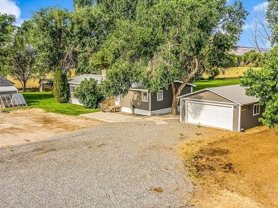 Come live the idyllic country life at this peaceful Fruita property. From the homes front deck, sit back and take in the serenity of 7.15 acres of lush pastures overlooked by shade trees and colorful Colorado sunsets. With 10 shares of irrigation, this property is ready for your farming and ranching needs. Remodeled and updated, the home features rustic-toned wood laminate flooring and fresh paint. New cabinets adorn the kitchen and bathrooms which beautifully complement the granite countertops. A split-bedroom layout, this home offers a 5pc master en-suite and two living spaces along with vaulted ceilings giving the home an open and spacious feel. Two detached garages provide 4 parking spaces plus a barn and shed give space for farm equipment and storage. The surrounding beauty of the Monument and the Mesa bring an extra layer of tranquility to this property.