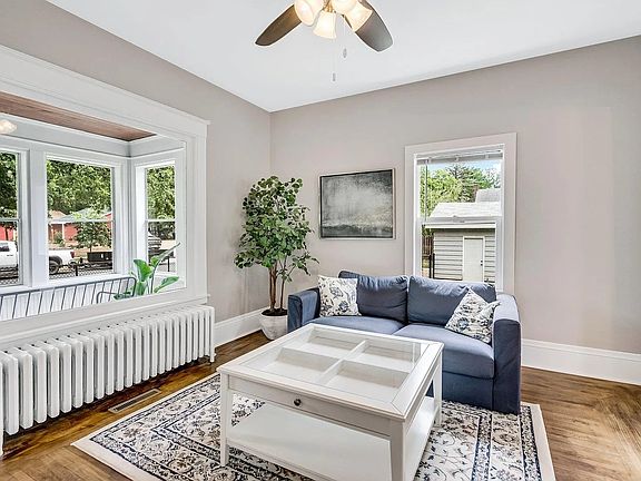 This classic two-story home boasts an open floor plan, stunning wood floors, and charming original details throughout. Enjoy morning coffee on the adorable front porch or take advantage of the main-floor bedroom, perfect for one-level living, a home office, or a guest space.