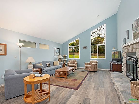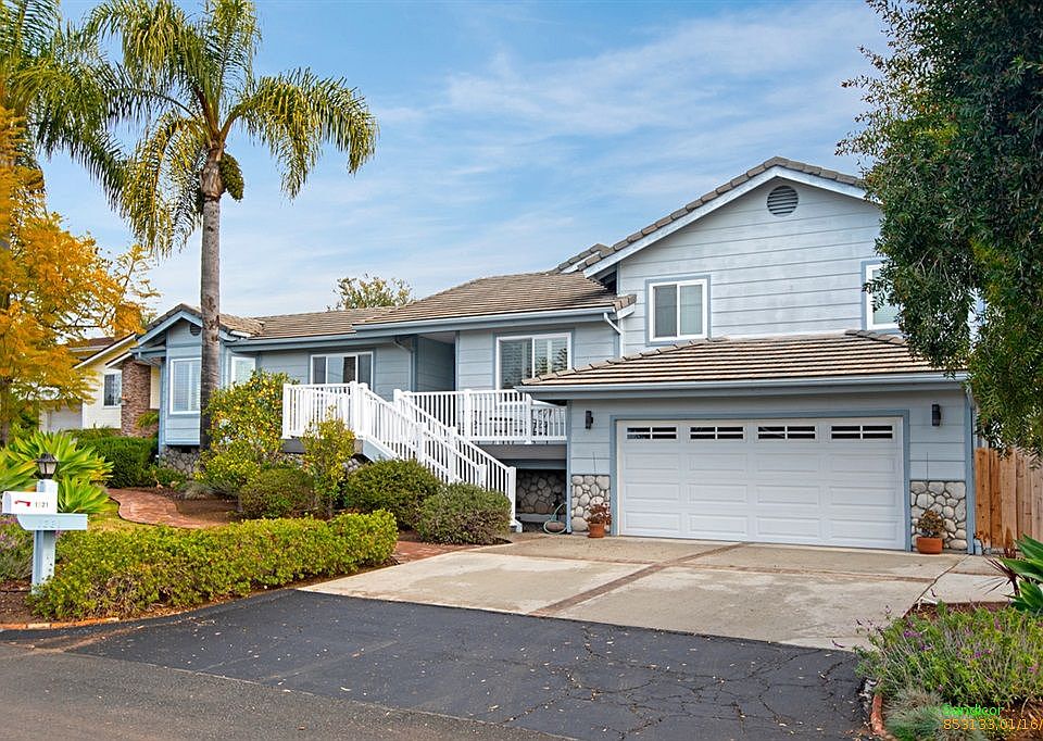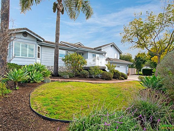 Beautifully renovated light-bright split-level home with an exceptional floor plan that includes vaulted ceilings & rock fireplace. Private master BR/BA features a cedar lined closet & large walk-in slate shower. Oversized 2 car garage with tons of storage & gated side yard parking. Recent upgrades include newer roof, solar, dual panel windows & slider doors, updated bathrooms, trex entry stairs & deck. Spacious pool-sized property with lovely sunsets, vista and peek ocean views. Minutes to Vista Village.