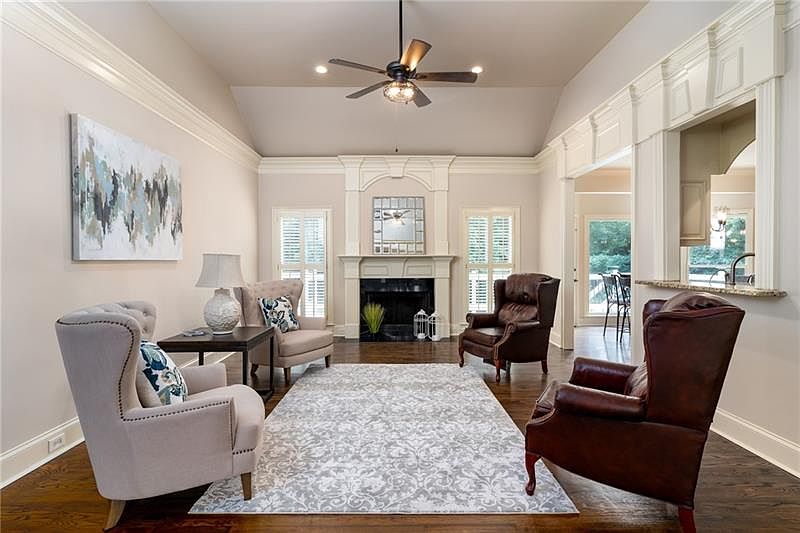 Lovely and inviting ranch on a basement. Open living floor plan w/luxurious master suite on main. Soaring ceilings, hardwood floors, updated master bath w/ spacious closet, gentlemanâs study, elegant formal dining room. 3 suites are on main level w/second master in terrace level. Kitchen opens to huge deck & living areas surrounded by beautiful private views. New finished basement perfect for entertaining. Plenty of opportunities for water skiing, sunbathing, paddle boarding, kayaking & fishing. Habersham Marina, Mary Alice, West Bank,& Buford Dam Parks down the road.