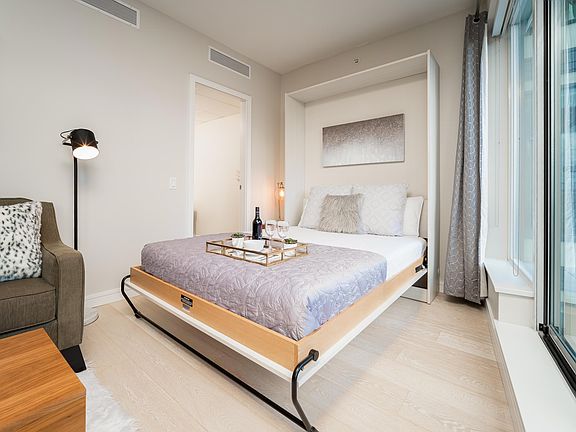Welcome to ALEXANDRA where contemporary architecture meets modern living at the foot of English Bay. Steps to Stanley Park & 22 km's of seawall, restaurants, cafes & shopping at your door step. This like new high-end STUDIO w/ OFFICE boasts the highest quality finishings & peek-a-boo ocean views! FULLY FURNISHED & turn key ready for first time buyer, investor or pied-a-terre. Luxurious features include custom Murphy bed, white oak h/w, limestone tiles & more. Built to GOLD LEED standards this gem boasts an efficient layout, 9' ceilings, & air conditioning. The ALEXANDRA's lavish amen. include a stunning marble lobby w/ 24hr concierge, private patio w/ views of English Bay, lounges, fitness centre & a garden space. This condo will rent for $2200+/month. Experience the BEST of the WEST END!