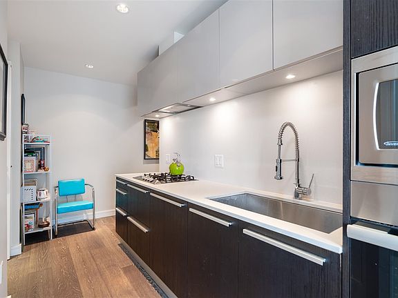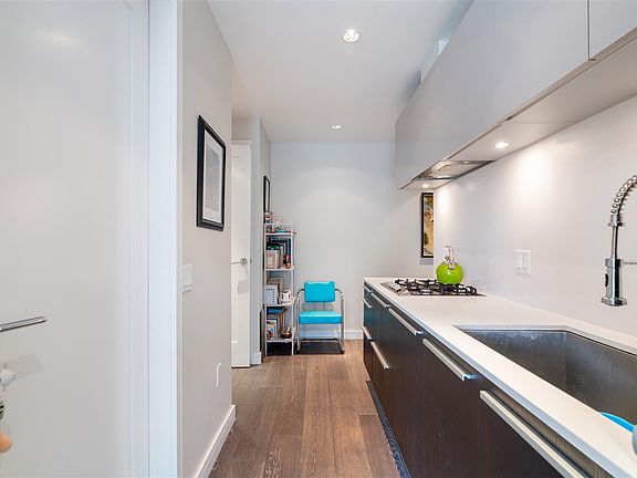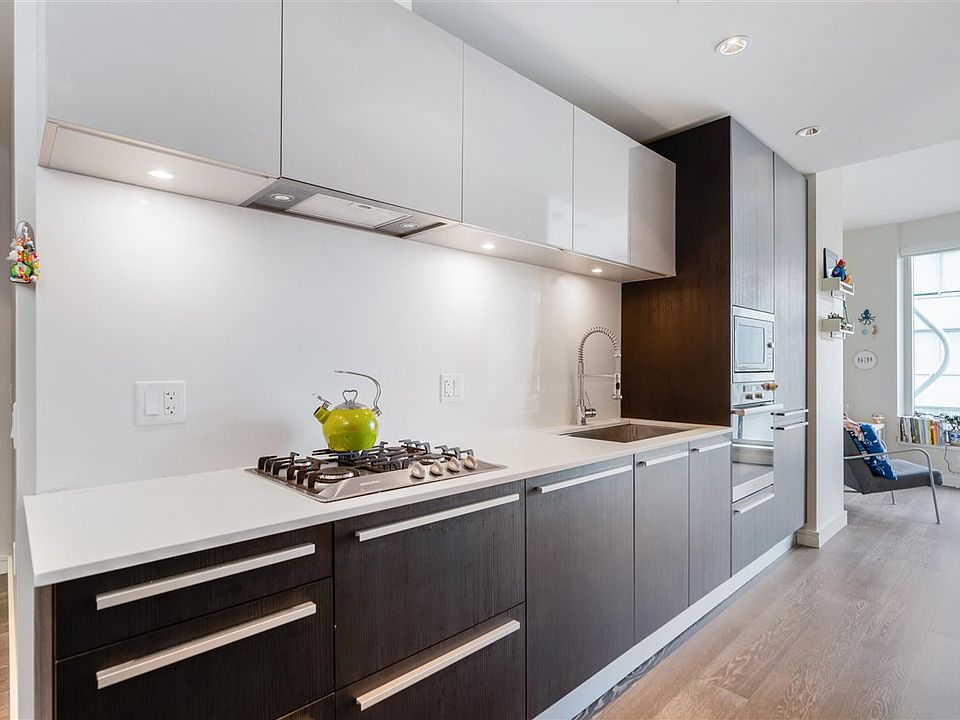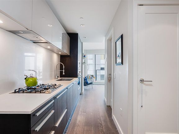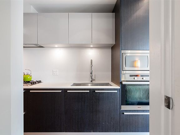 WELCOME TO THE ALEXANDRA BY CONCORD PACIFIC - a lavishly boutique building with only 85 suites is situated inVancouver's most iconic neighbourhood, English Bay. This impeccably laid out 443 SQF studio + flex on the 8th floor features West-facing sunset views and partial ocean views from your private balcony. This home offers 9" ceilings, engineered hardwood floors, Miele SS appliance package integrated into sleek modernist cabinetry, quartz countertops, AC Geothermal heating. Club Alexandra includes an exclusive private lounge with kitchen, big screen TV and an extensive Ocean View Terrace, fitness, facilities, meeting room, garden plots for urban agriculture. Concierge service in the elegant secured lobby.