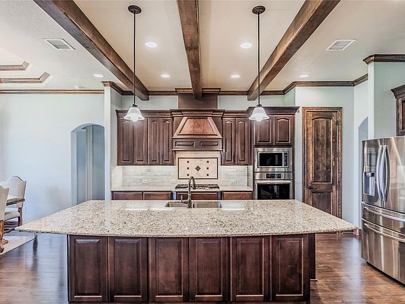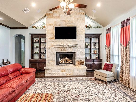 Enter the spacious home to find the office adorned with beautiful wood shelving. The heart of the home boasts an expansive kitchen featuring an oversized island complemented by granite countertops and stainless steel appliances; and a main living area with a large fireplace flanked by built-in shelving. The primary bedroom offers vaulted ceilings, a wall of windows and an ensuite bath featuring jacuzzi tub & walk-in shower. Three additional bedrooms offer flexibility with two sharing a Jack & Jill bathroom. Outdoor features include a patio with fireplace, breezeway connecting to the three-car garage, solar panels, a recent 24x28 shed and a paved RV area. Property is Ag Exempt for hay.