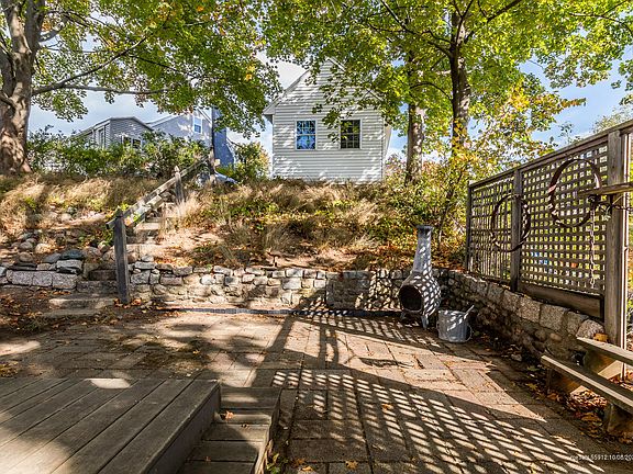 Adorable, and affordable! From a newer garage on Lee Avenue, a picturesque stairway brings you to this private, period cottage. Inside you'll find the original kitchen, with handsome wood cabinets and a cast-iron farm sink that shines like new. This kitchen was sized to accommodate a generous dining table, too. The living room is likewise large, with the original oak flooring, and beautiful built-in shelving. Both bedrooms retain their oak floors, as well as marbled-glass light shades. (The smaller of the two bedrooms is shown with a queen-sized bed in place.) Even in the bathroom you'll find a well cared-for 1940s sink, and mint-condition ceramic light fixtures! The tub and enclosure are updated in gleaming white.The attic is easy to access and has good headroom. The basement contains laundry, work-benches, and oodles of storage. Heat, hot water, and cooking are fueled by low-cost natural gas. At the back door, a generous mudroom with more storage makes room for coats, shoes, gardening gear, and whatnot. With replacement windows and recent vinyl siding, this home is ready to plug-and-play. Outdoors, the landscaping creates a series of rooms that circle the house. There's a ''sitting room'' to the east; a patio to the north; a terraced shade garden; and a sunny spread of lawn to the west. The whole property is thoroughly screened with fence and plantings, creating a private enclave that's still just a short walk from the greenbelt and Community Center, and a few minutes' drive from the highway, the Mall, or Willard Beach. The garage makes room for your vehicle, and a whole lot more!
