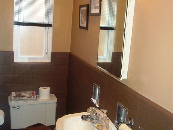 Great Home very well kept, First floor 1/2 bath, great architectural details curved doorways,log burning fire place, chair rails, crown molding, nicely updated Kitchen, Large size rooms, Open floor plan, Large Master Bedroom with 2 closets 1 is a walk in closet, Original era tiled Bathroom, finished basement with laundry room, and an over sized tool room, Covered front Porch, and a Very large patio, in a private back yard setting, 150 amp electric, hard wired smoke detectors and a internal garage.
