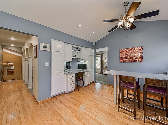 Welcome to this fabulous 4 bedroom 3 bathroom home in the Orchard Brook Subdivision. This home has many updates including all 3 bathrooms, newer windows, newer HVAC (2012), six panel doors and recessed lighting. The eat in kitchen features white cabinetry with corian counter tops, tile back splash, vaulted ceiling, hardwood floors and a "command central desk". The walk out lower level doubles your living space and includes a family room with access to the yard, a wood burning fireplace and a wet bar. This home also features a great 3 season room heated by a wood burning pot belly stove. The lower level also features the 4th bedroom, an exercise room, laundry/utility room and the 3rd bathroom. Appreciate the outdoors from your deck and patio. Enjoy the community pool and club house reserved only for Orchard Brook residents. For city Commuters, DG Commuter shuttle stops 3 blocks away and stops and picks at Main St Train Station during rush hour. Make it your home today!