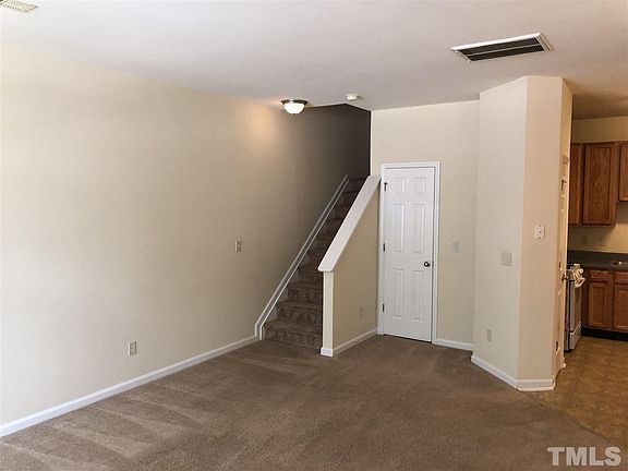 This gorgeous townhome is move in ready just for you. All the work is done: brand new carpet, neat + clean. Open plan on main level with oversized living + dining rooms + spotless kitchen with gas range Second floor has two nicely sized bedrooms plus laundry. Top floor master suite is incredible: vaulted ceilings, huge closets + private bath. blinds already installed. Very easy access to 440 and 540, WakeMed, Downtown Raleigh. Refrigerator, washer + dryer included. Community pool. Do not wait!
